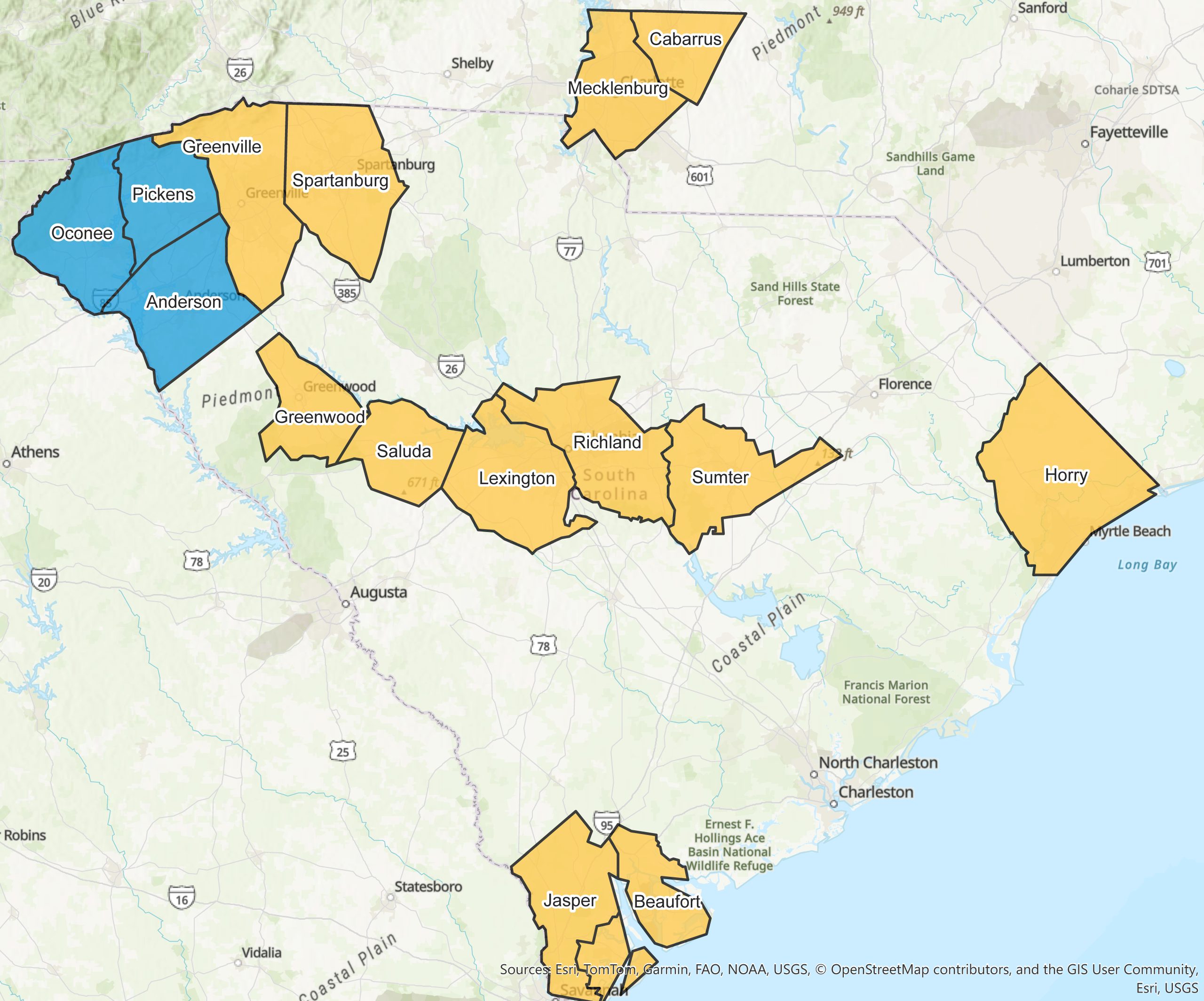 Select a county from the dropdown below for more information on PASOs local affiliate sites in the Carolinas. Counties highlighted in yellow denote full service. Counties highlighted in blue denote partial service. If you are in a blue county, please contact the PASOs site closest to you.